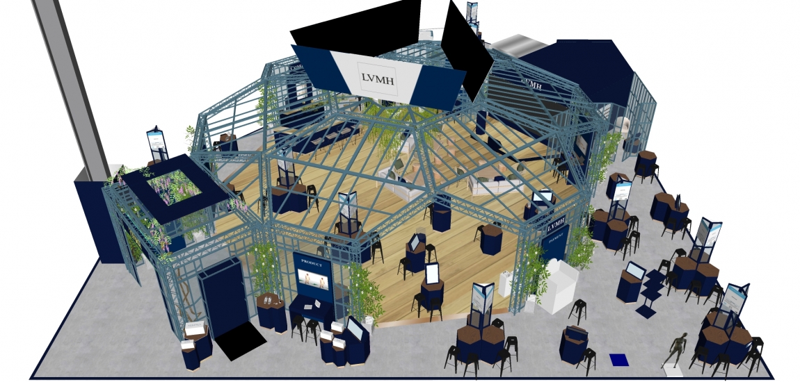 Production du décor, production du mobilier: desk start up et maisons du groupe LVMH.