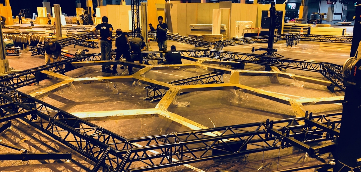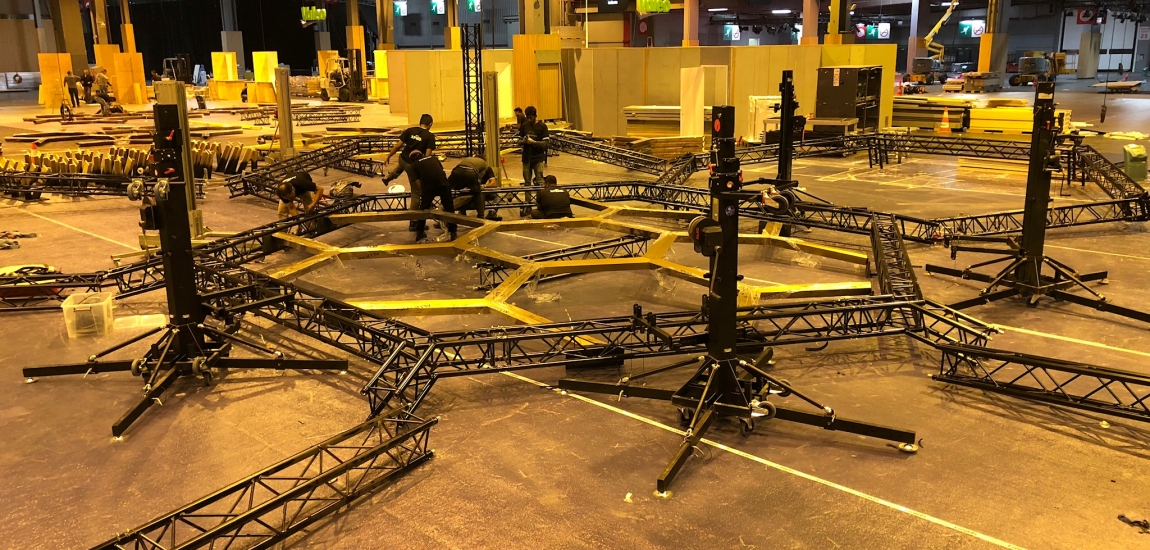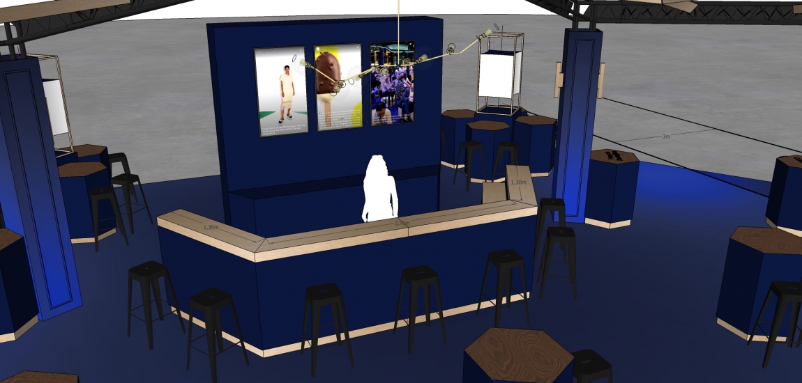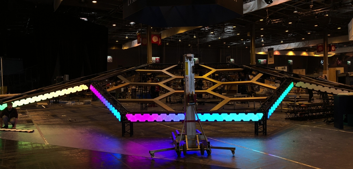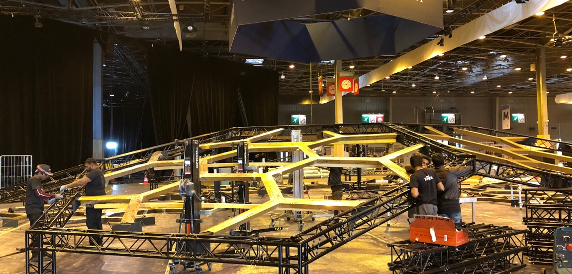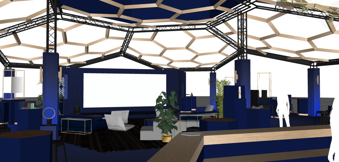 Etude, conception de la structure du stand en dome composé de 7 hexagones.